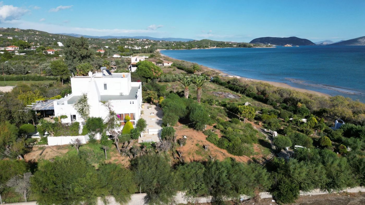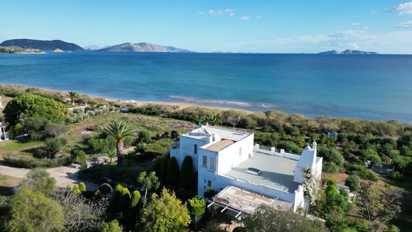 Cette villa en bord de mer s’étend sur 528 m² sur un vaste terrain de 4 008 m², à seulement 50 mètres de la plage immaculée.